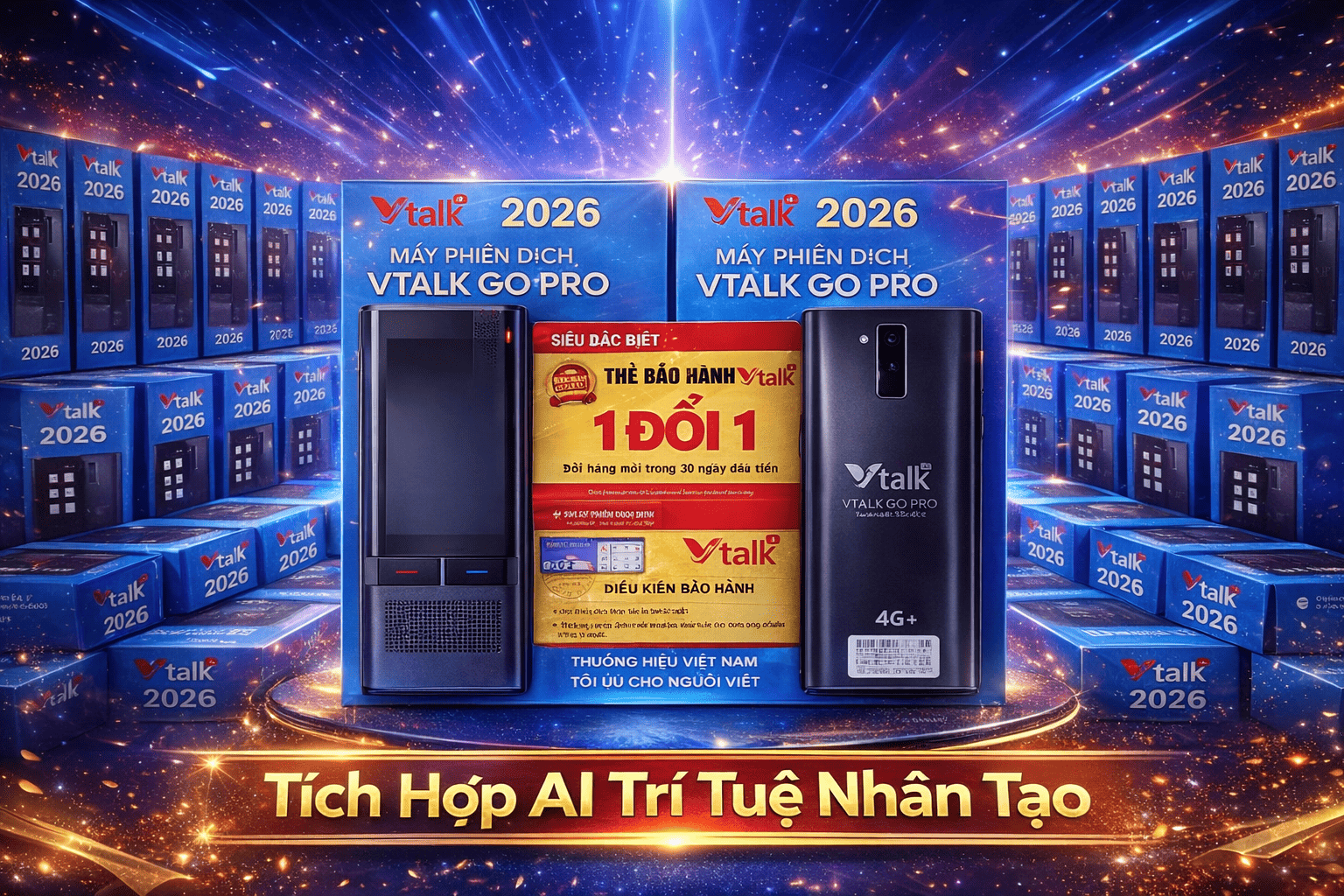 Máy phiên dịch Vtalk Go Pro 2026 được bảo hành 12 tháng, lỗi 1 đổi 1 do nhà sản xuất