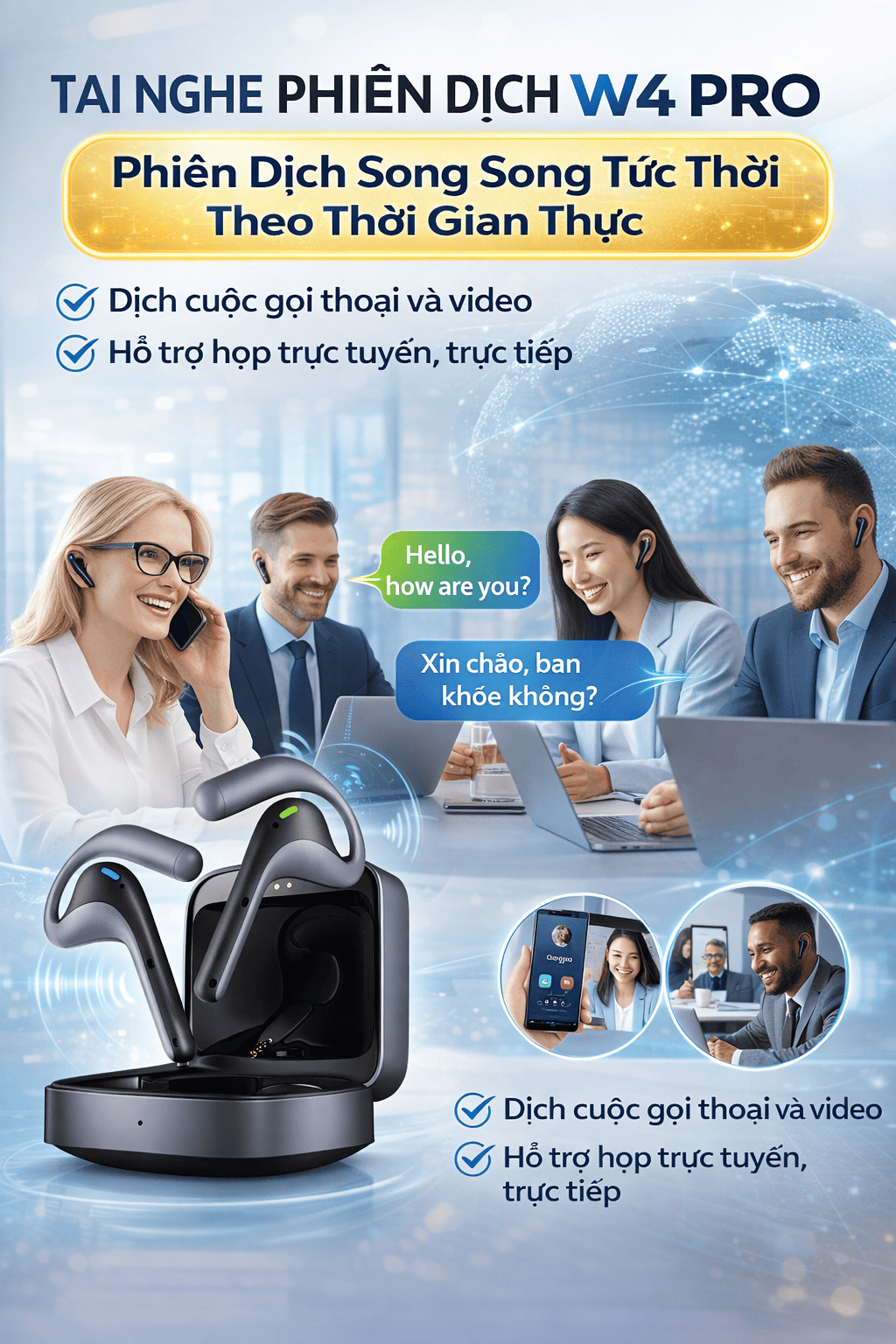 Tai Nghe Phiên Dịch W4 Pro – Trợ Thủ Ngôn Ngữ AI Cho Mọi Hành Trình